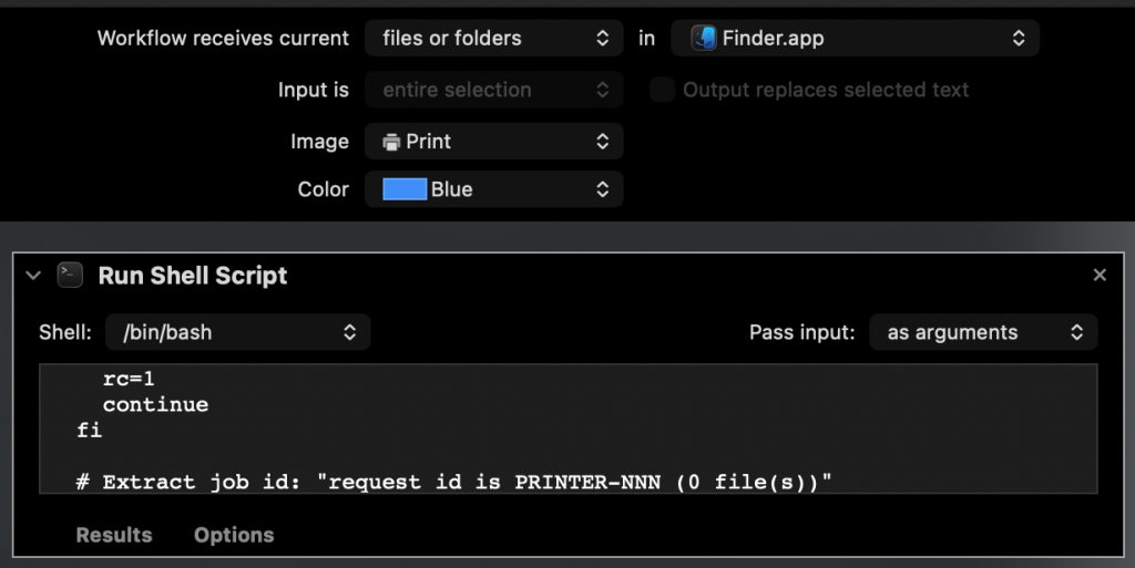 notify_err(){ /usr/bin/osascript -e 'display notification "'"$1"'" with title "'"$APPNAME"'" subtitle "Printing failed"'; }